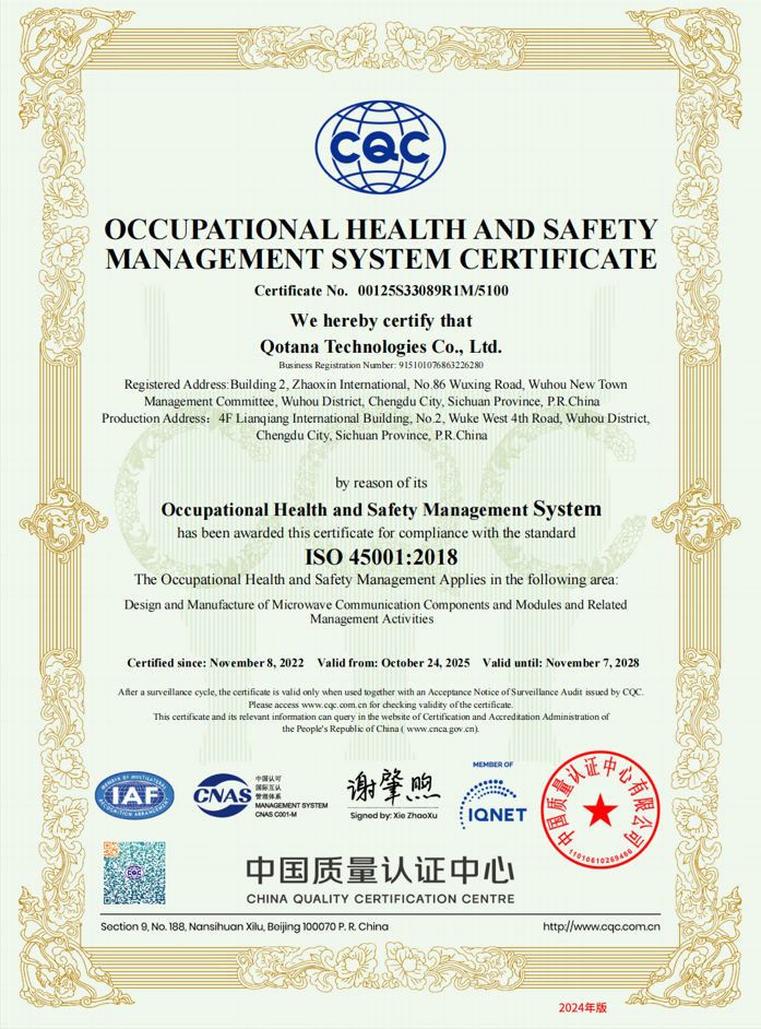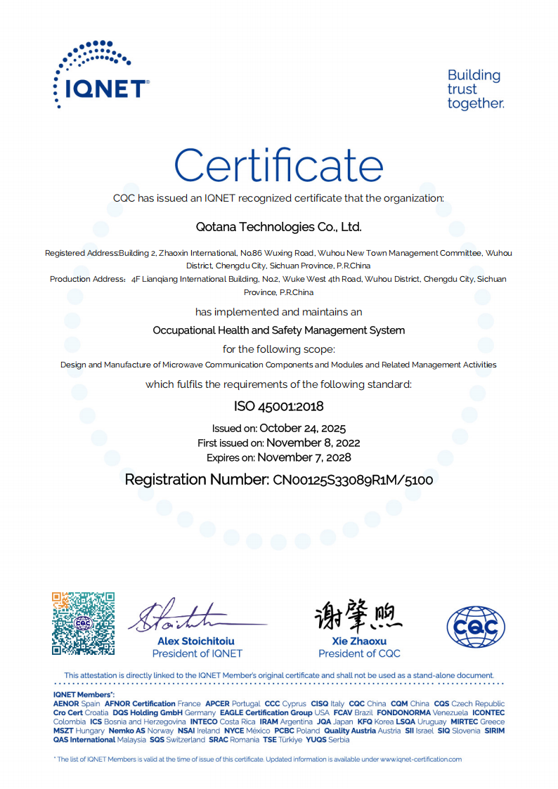 ISO45001 OCCUPATIONAL HEALTH AND SAFETY MANAGEMENT SYSTEM CERTIFICATE-IQNET